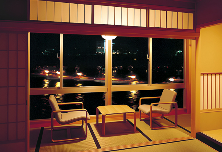 ロビーラウンジ、食事処、川側客室から、のんびりくつろぎながらお楽しみください。当館目の前の遊歩道に座ってお楽しみいただくことも出来ます。
